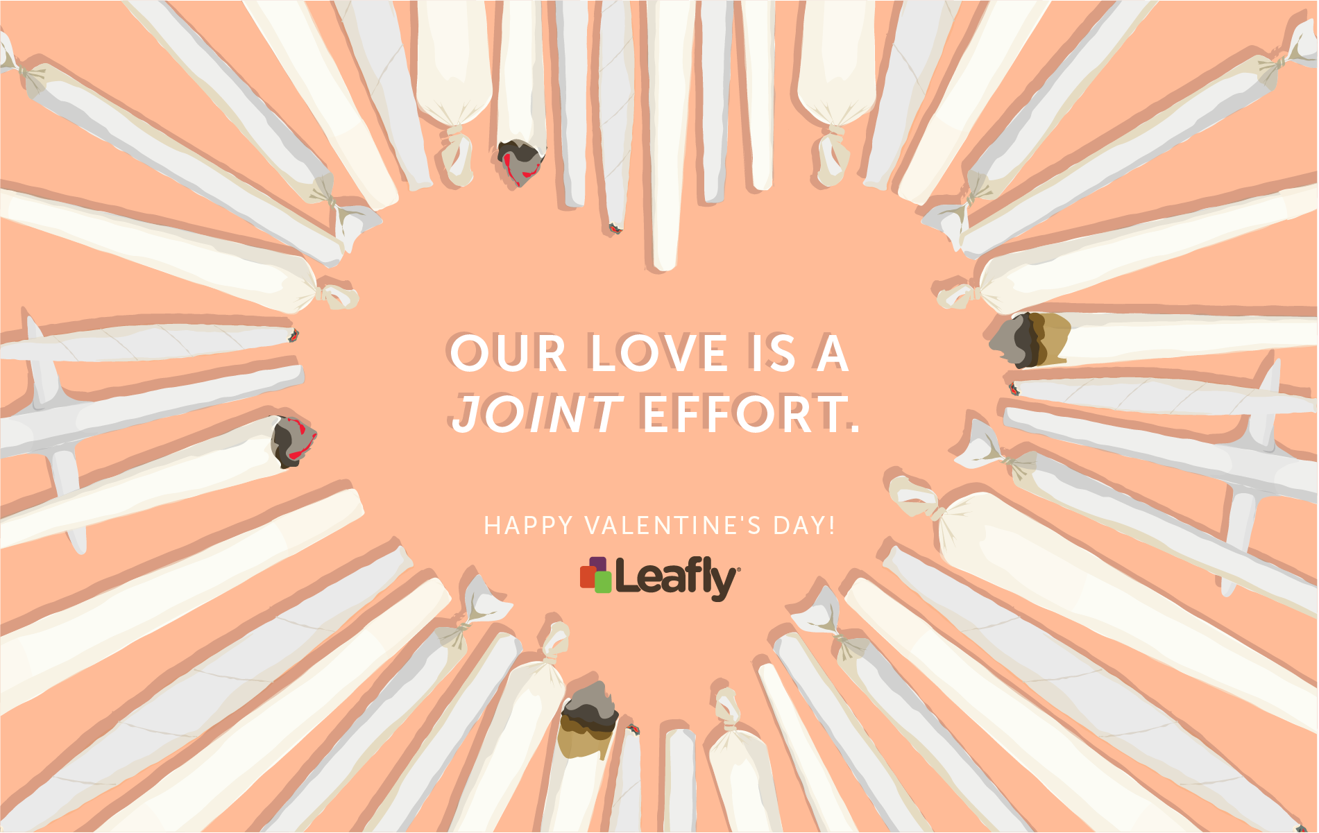 This Valentine’s Day, bring some lighthearted (and free!) fun back to a holiday rife with prix fixe menus, flower shop brawls, and chocolates filled with mystery goo. Whether you’re single or spoken for, your cannabis-friendly friends and paramours alike will enjoy these six punny valentine designs. Share them on social media or download a PDF version to print out your favorite (make sure you don’t select “fill entire paper” or “fit to page” so that the original dimensions stay intact). Happy Valentine’s Day!